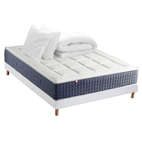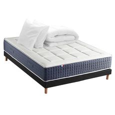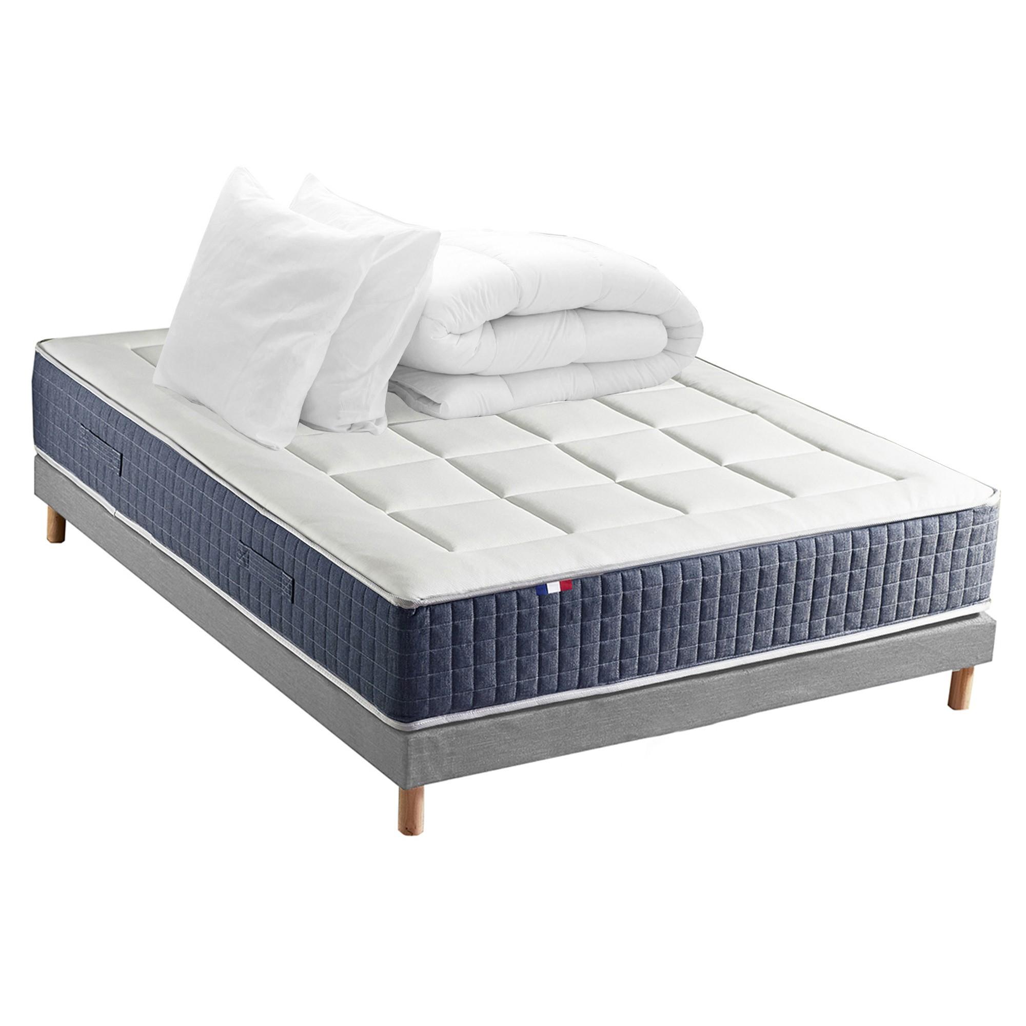 Ensemble Matelas Ressort 7 zones + Mémoire de forme + Sommier KING STYLE + couette + oreillers - Fabriqué en France