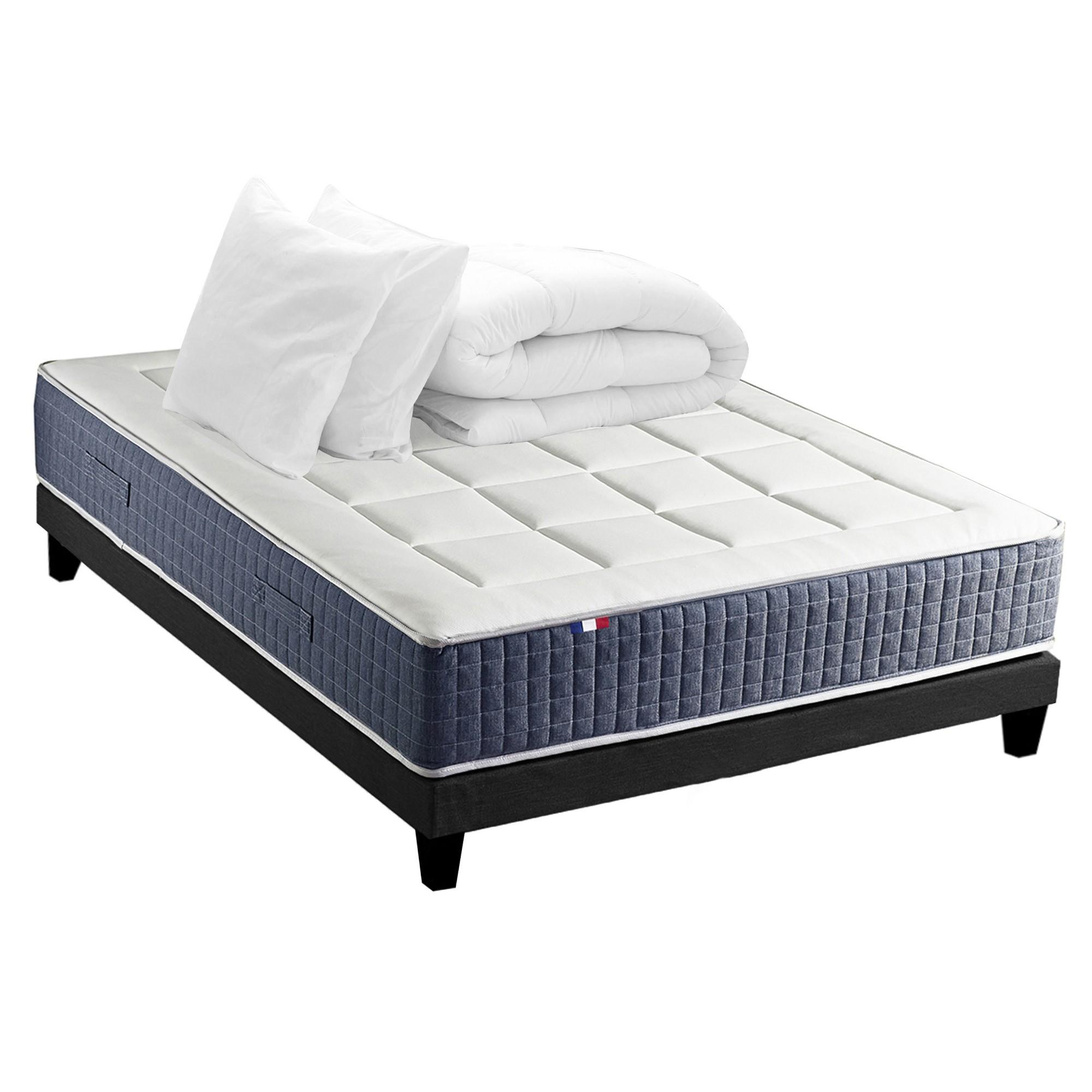 Ensemble Matelas Ressort 7 zones + Mémoire de forme + Sommier KING STYLE + couette + oreillers - Fabriqué en France