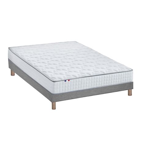 Ensemble matelas ressorts ASTRE + sommier kit gris à lattes flexibles 140x190