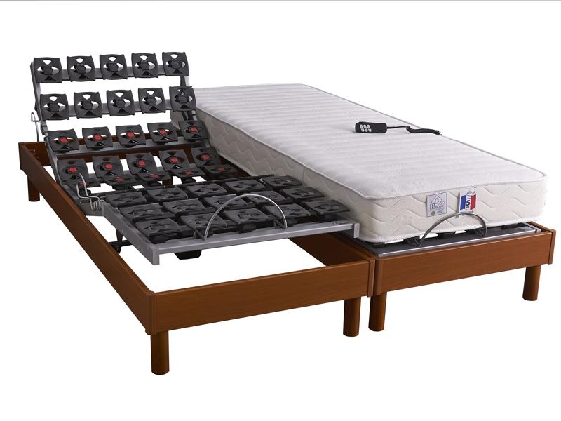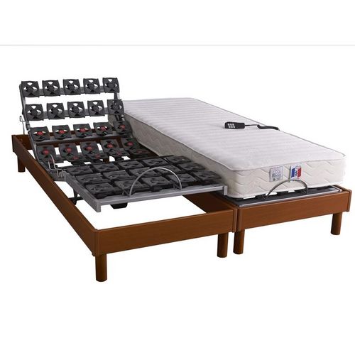 Découvrez les avantages et le confort de ce sommier de relaxation tous plots décor bois de merisier.