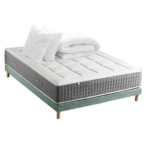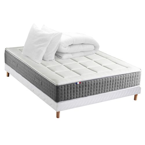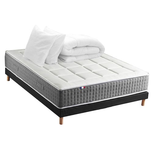 Matelas ressorts MAX, 7 zones, sommier rigide, pack couette oreiller