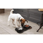 Cette double gamelle permet de faciliter la prise de nourriture pour votre animal de compagnie grâce à son revêtement antidérapant. Ces bols retiennent la nourriture grâce à leur design antidérapant. Les deux gamelles permettent à votre animal d'avoir à disposition eau et croquettes sur un seul et même support. Le système empêche l'animal de renverser les bols et leur contenu.