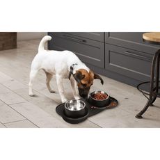 Coloris : Noir pour le tapis, inox pour les bols