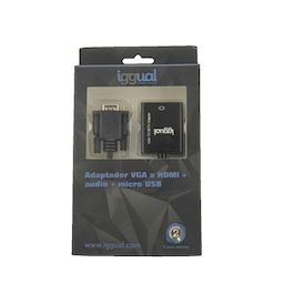 Découvrez l'adaptateur Iggual IGG317297, conçu pour connecter des appareils disposant d'une sortie VGA à un écran HDMI. Ce modèle intègre une prise audio jack 3,5 mm ainsi qu'une alimentation via microUSB, garantissant une expérience multimédia complète. Compatible avec des résolutions allant de 720