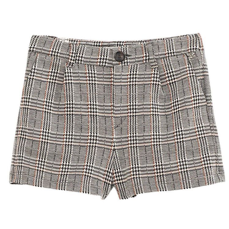 Short pour fille de la marque IKKS Short motif prince de galles 2 poches Coloris : Noir/Marron Taille ajustable jusqu'au 14 ans Fermeture zip et bouton Composition : 98% polyester , 2% élasthanne