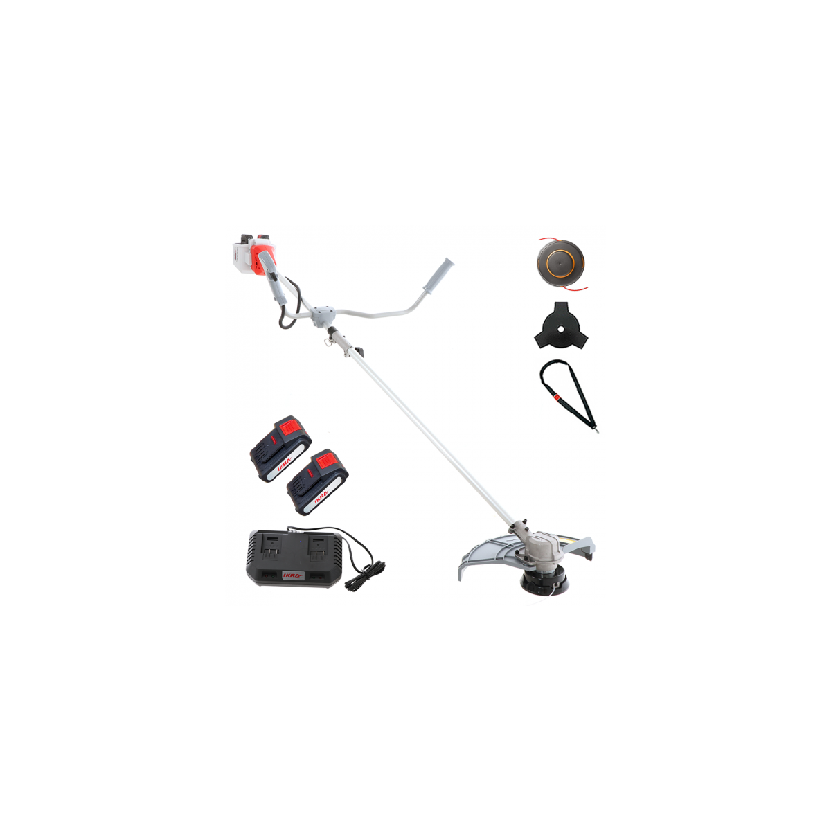 Débroussailleuse à batterie sans fil 40V - 2 batteries lithium 2.0Ah Chargeur double - Bobine de Fil + Lame 3 dents 25,5 cm IKRA
