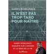 Harry Roselmack enquête que l'univers et le sens de la vie ! Pouvons-nous vraiment cesser de vouloir remonter à l'origine du processus dont nous sommes le résultat ? Pouvons-nous renoncer à savoir si nos vies particulières et, par extension, la vie en général ont une signification, si elles doivent suivre une direction ? Guidé par ces questions, Harry Roselmack s'est lancé dans une enquête sur l'univers. A partir de connaissances théoriques riches qu'il a vulgarisées, il bâtit un raisonnement métaphysique pour découvrir si l'univers est une création porteuse d'une raison d'être et d'une finalité. Les chemins qu'emprunte sa cosmogonie posent les jalons de nouvelles définitions de l'espace et du temps et nous accompagnent dans une prise de conscience essentielle : celle du rôle que nous avons à jouer dans l'univers. L'humanité n'est pas encore parvenue au stade ultime de son évolution. Une évolution qui, selon l'auteur, passera par cette compréhension. Une prise de conscience globale, un changement radical de notre façon d'être sont nécessaires à l'établissement d'un avenir plus radieux. Il n'est pas trop tard pour naître... véritablement.
