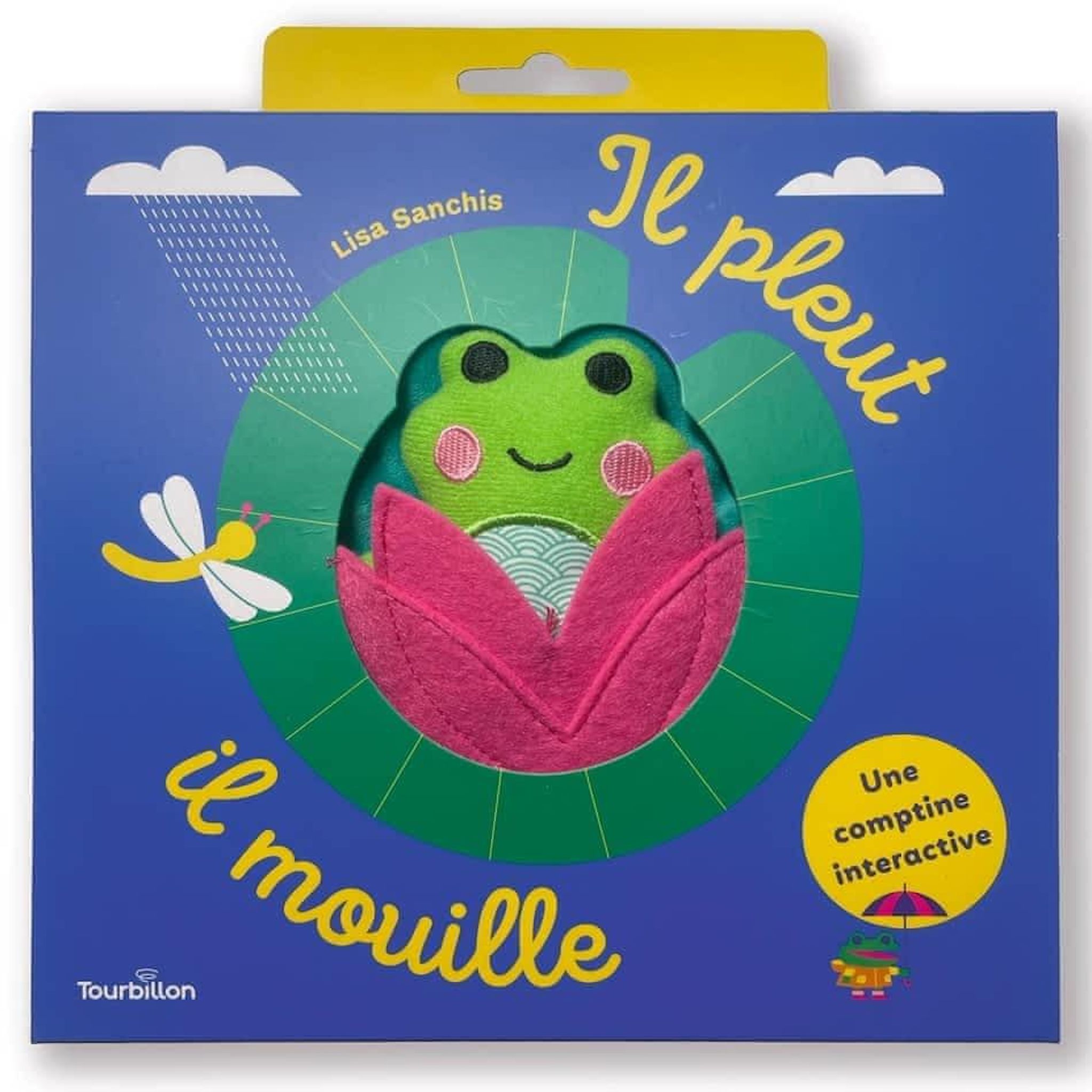 La célèbre comptine Il pleut, il mouille, c'est la fête à la grenouille à chanter et à jouer pour le plaisir des tout-petits ! Un livre tissu d'éveil pour bébé Une grenouille à déplacer dans les pages, des matières à toucher, un arc en ciel en broderie, un nénuphar qui tourne : un très beau livre