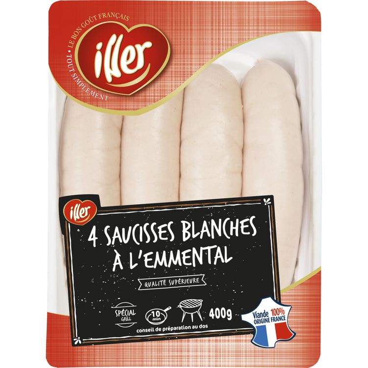 saucisse blanche à griller à l'emmental, pur porc