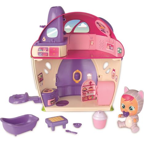 Découvre le fantastique univers des Cry Babies ! Mais qui se cache à l'intérieur de cette maison à la forme d'un biberon ? C'est Katie, la Cry Babies Magic Tears! La super maison de Katie dispose de plusieurs pièces de vie, dont une cuisine et une salle de bain équipées de nombreux accessoires. La maison joue également de la musique et fait des bulles grâce aux larmes magiques de Katie !
