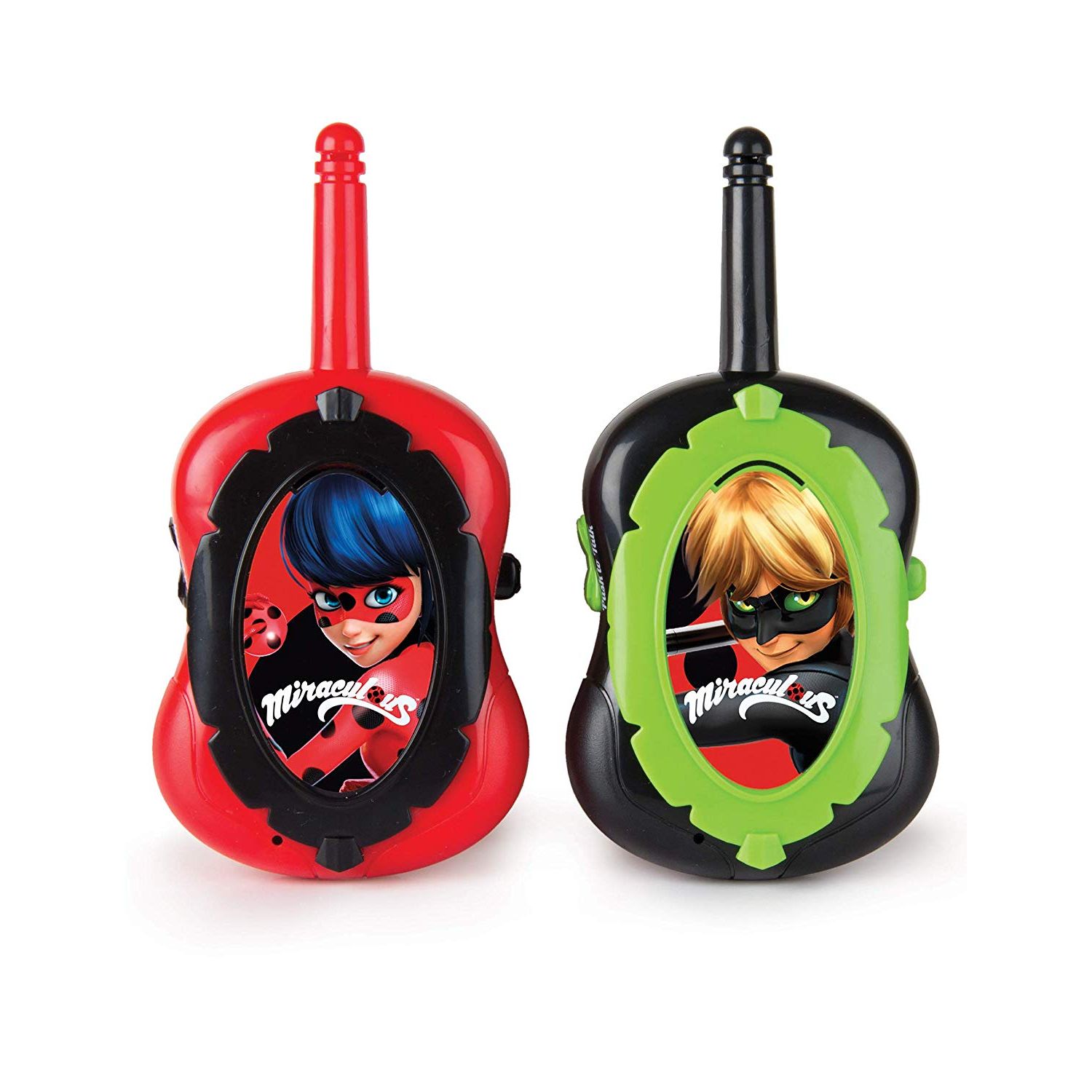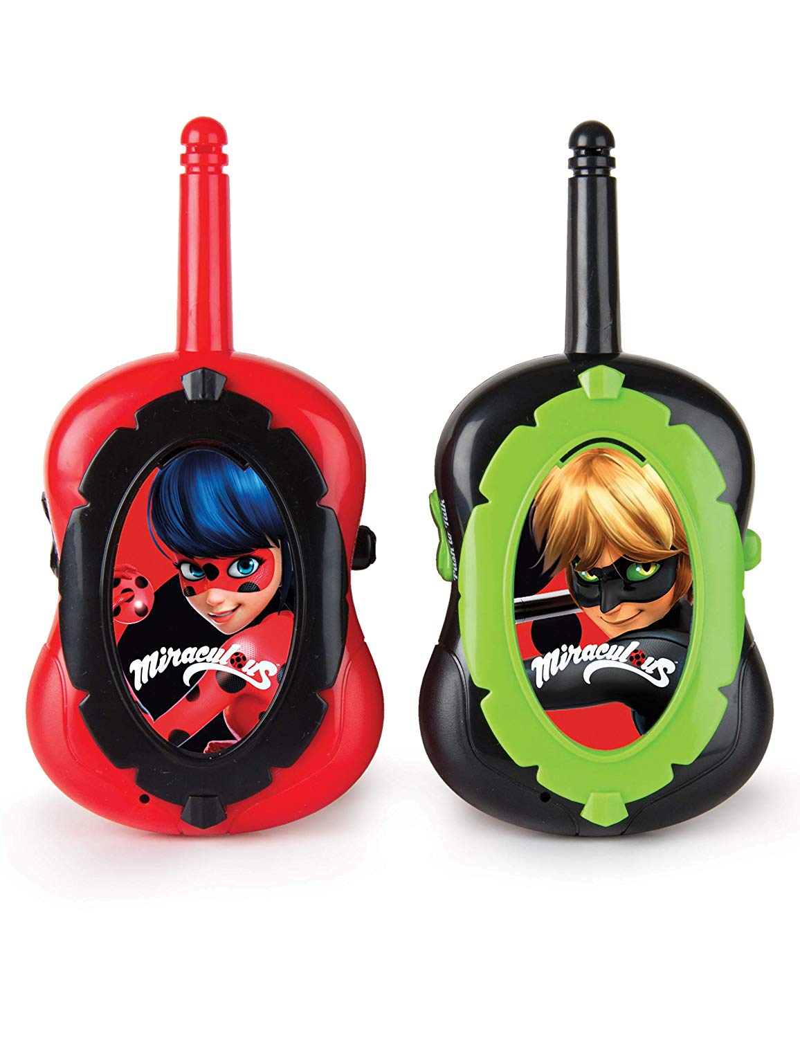 Vos enfants se transforment en Ladybug et Chat Noir avec ce lot de 2 Talkie Walkie Miraculous Ladybug ! Un talkie walkie est à l'effigie de Ladybug, l'autre à l'effigie de Chat Noir. Piles non inclues