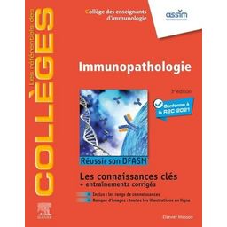 En parfaite conformité avec le nouveau programme de DFASM (diplôme de formation approfondie en sciences médicales) s'inscrivant dans la R2C 2021 cet ouvrage rassemble l'ensemble des connaissances indispensables à acquérir en immunopathologie. Il présente dans le détail les 24 items du programme relevant de cette spécialité avec des objectifs pédagogiques clairement définis et comporte deux parties : Une partie Connaissances composée de 22 chapitres où chaque chapitre commence par les situations de départ un tableau de hiérarchisation des connaissances en rangs A et B puis développe la thématique avec l'indication des rangs au fil du texte (les rangs C sont abordés) étayée de points clés tableaux et figures de rubriques sur les notions à retenir , Une partie Entraînement qui propose des cas cliniques et des questions isolées corrigés et commentés avec indication des rangs offrant un outil performant d'autoévaluation. Cette 3e édition encore plus didactique offre une mise à jour de l'ensemble des données et propose un accès en ligne aux recommandations. Les étudiants en DFASM qui souhaitent se préparer efficacement aux rangs A et B et valider leur DFASM. Cet ouvrage s'adresse également aux étudiants de 3 e cycle qui souhaitent mettre à jour ou acquérir des connaissances.