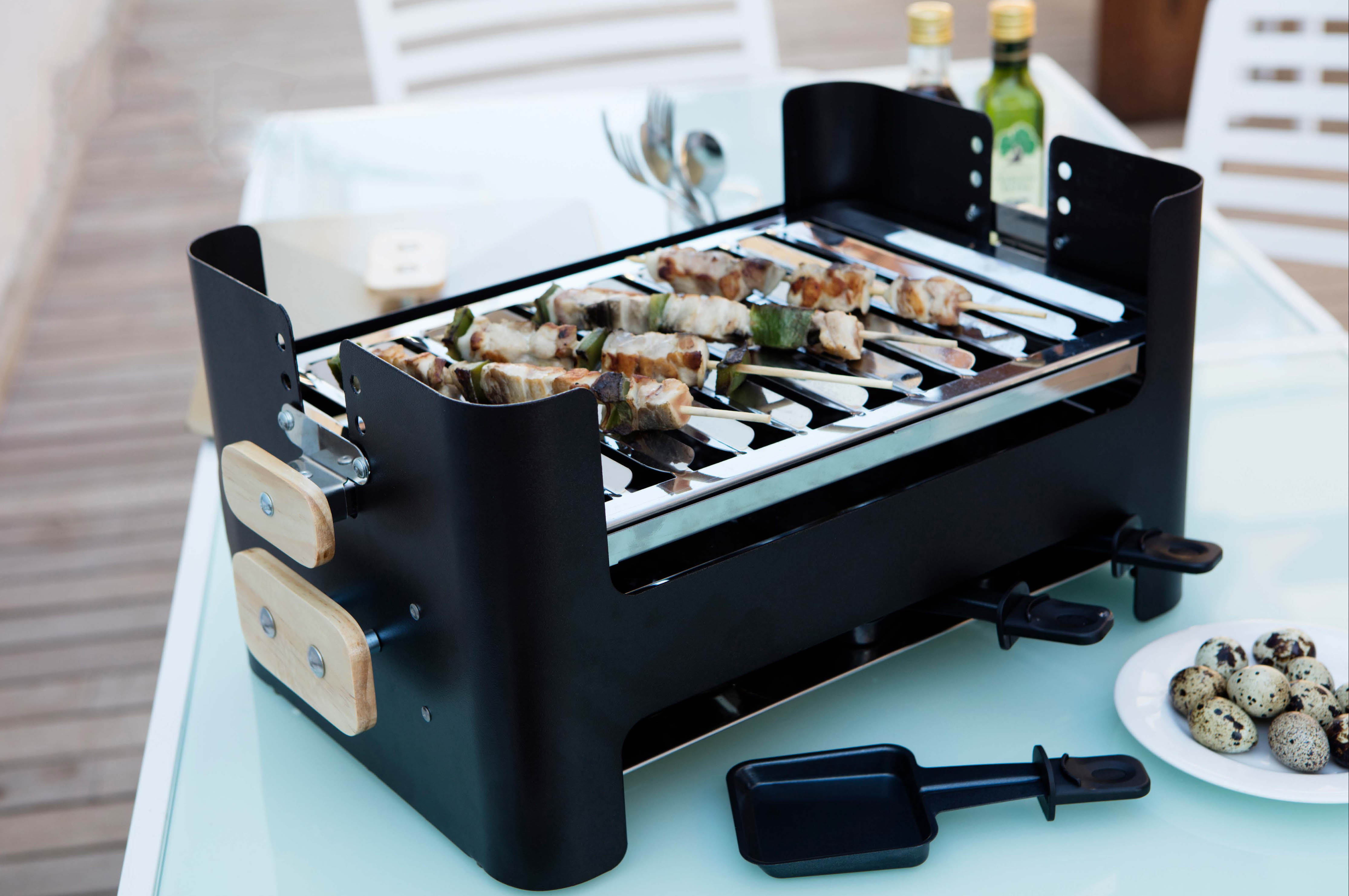 La Polyvalence Grill/Raclette. Barbecue de table. Transportable partout grâce à son sac de transport fourni. La cuisson saine grâce à la grille en acier inoxydable en "V". Le lavage au Lave-vaisselle.