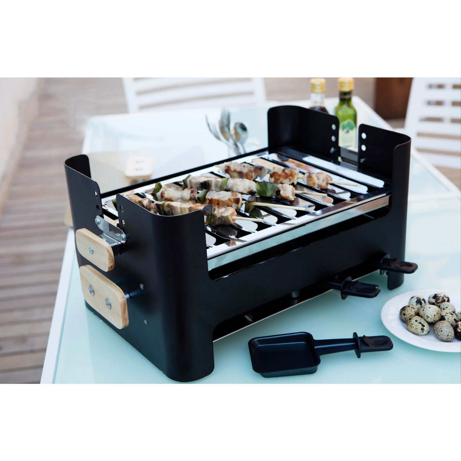 Ce barbecue charbon de bois est un petit barbecue de table. Vous pourrez profiter d'un moment convivial autour d'un barbecue même en intérieur si le temps n'est pas de votre côté. Ce barbecue charbon de bois est idéal lorsque vous n'avez que peu de convives autour de la table. Ce barbecue charbon de bois est transportable facilement grâce à son sac de transport. Mais il permet également de savourer les plaisirs d'une raclette grâce à sa plaque et ses poêlons fournis.