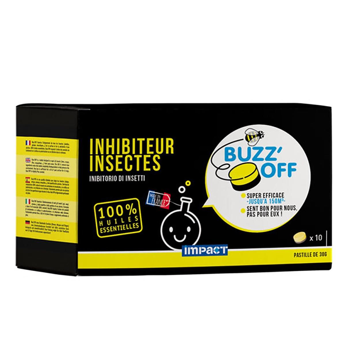 Impact 058812 100% de la production est faite en France.Tout est pré-dosé, concentré, précis. Proposition de produits de traitement simples et efficaces.La concentration de ces formules vous garantit l'absence d'excipients.Buzz'Off est une pastille destinée à repousser tous les insectes (abeilles, g