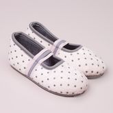 Craquez pour cette charmante paire de ballerines enfant aux couleurs tendres. Dessus en textile tout doux, motif pois appliqué. Pratique : 3 élastiques sur le dessus pour les enfiler en un clin d'oeil ! Ces chaussons fille assurent un bon maintien du pied. Intérieur en textile uni bien confortab