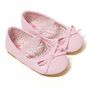 Cette paire de ballerines apportent une note chic aux tenues de bébé ! Agréables à porter. Dessus uni, avec nœud appliqué. Elastique sur le dessus du pied pour un meilleur maintien. Intérieur textile confortable. Semelle élastomère antidérapante pour ces ballerines bébé.