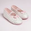 Ces chaussons ballerines apporteront confort et douceur aux pieds des filles ! Excellent maintien grâce aux 2 élastiques sur le dessus. Dessus doux orné d'étoiles argentées et d'un noeud fantaisie. Intérieur confortable en éponge. Ces chaussons fille ont une semelle élastomère antidérapante.