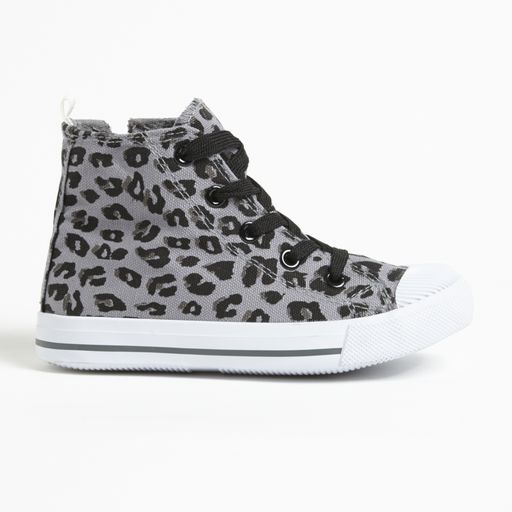 Toujours très mode, les baskets en toile fille accompagneront tous les looks ! Dessus imprimé léopard. Ouverture par zip et lacets, œillets métal. Intérieur et extérieur textile. Semelle élastomère antidérapante pour ces baskets en toile fille.