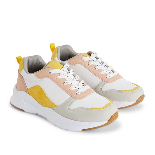 En savoir +Les filles vont adorer ces baskets effet colorblock pour un look ultra tendance ! La semelle arbore une forme carrément stylée et possède un renfort contrastant au talon et au niveau de la pointe. Fermeture à lacets.
