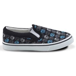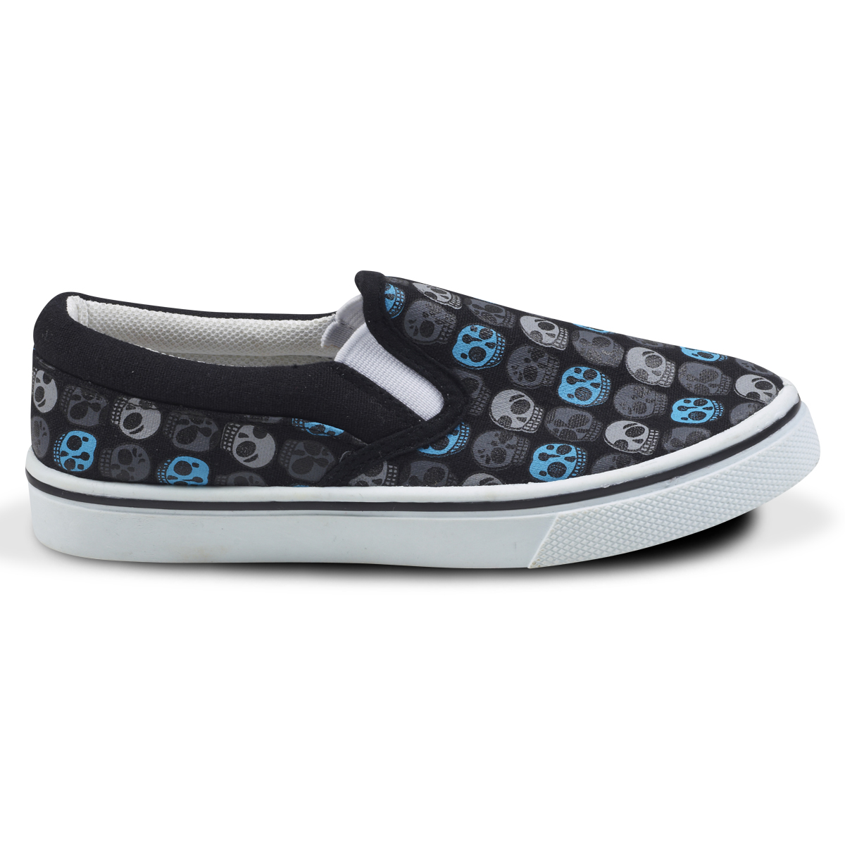 Des tennis élastiquées avec des têtes de mort, elles plairont forcément aux garçons ! Dessus en toile, contour du pied légèrement matelassé. Intérieur en textile. Ouverture élastiquée, c'est pratique. Semelle élastomère antidérapante pour ces tennis garçon.