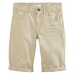 Pour les garçons qui suivent la tendance, ce bermuda beige tombe à pic ! 100% coton, agréable à porter. Toucher doux. Pratique : ceinture à passants ajustable par un élastique boutonné à l'intérieur et ouverture par bouton et zip. 5 poches. On note les plis permanents, les revers non cousus à l