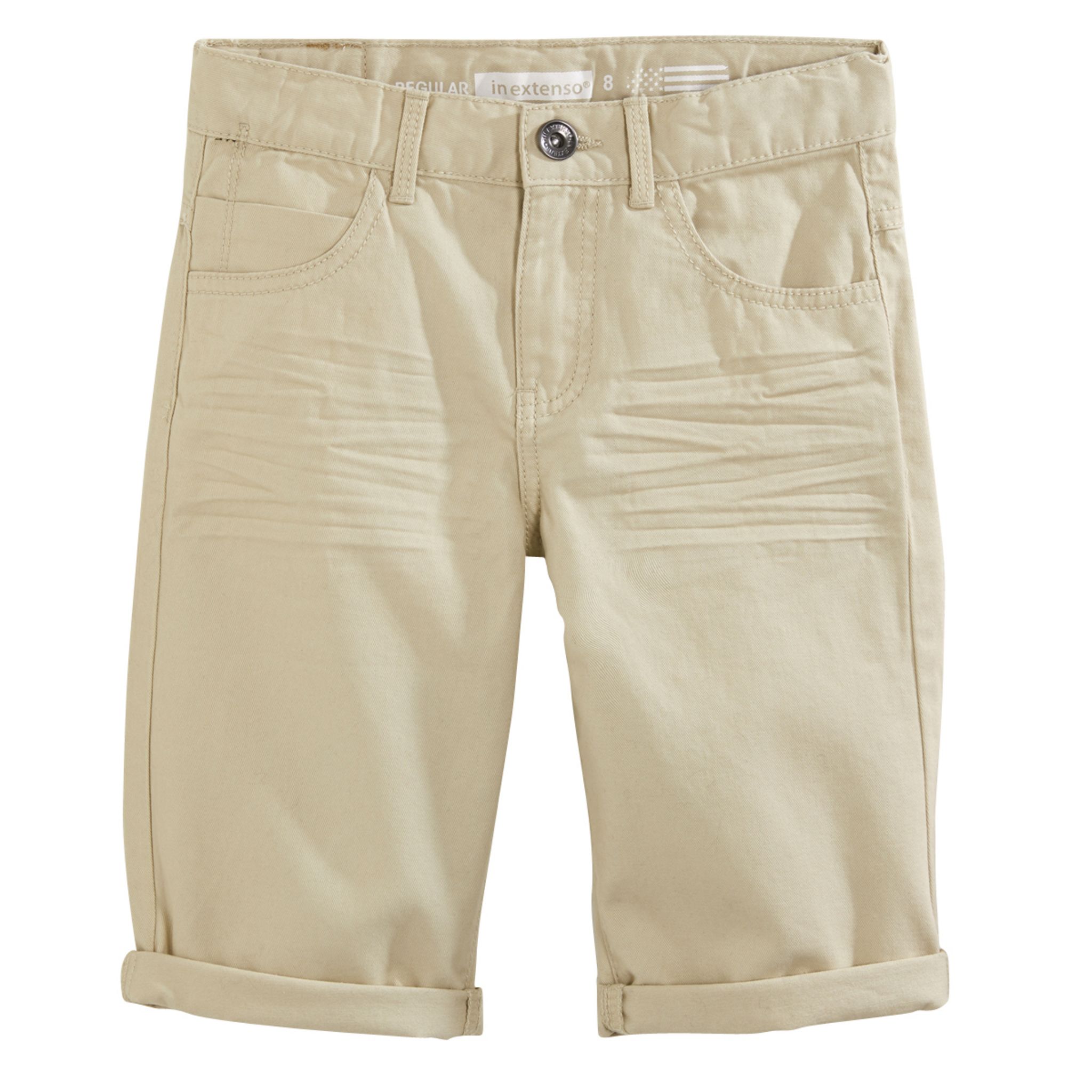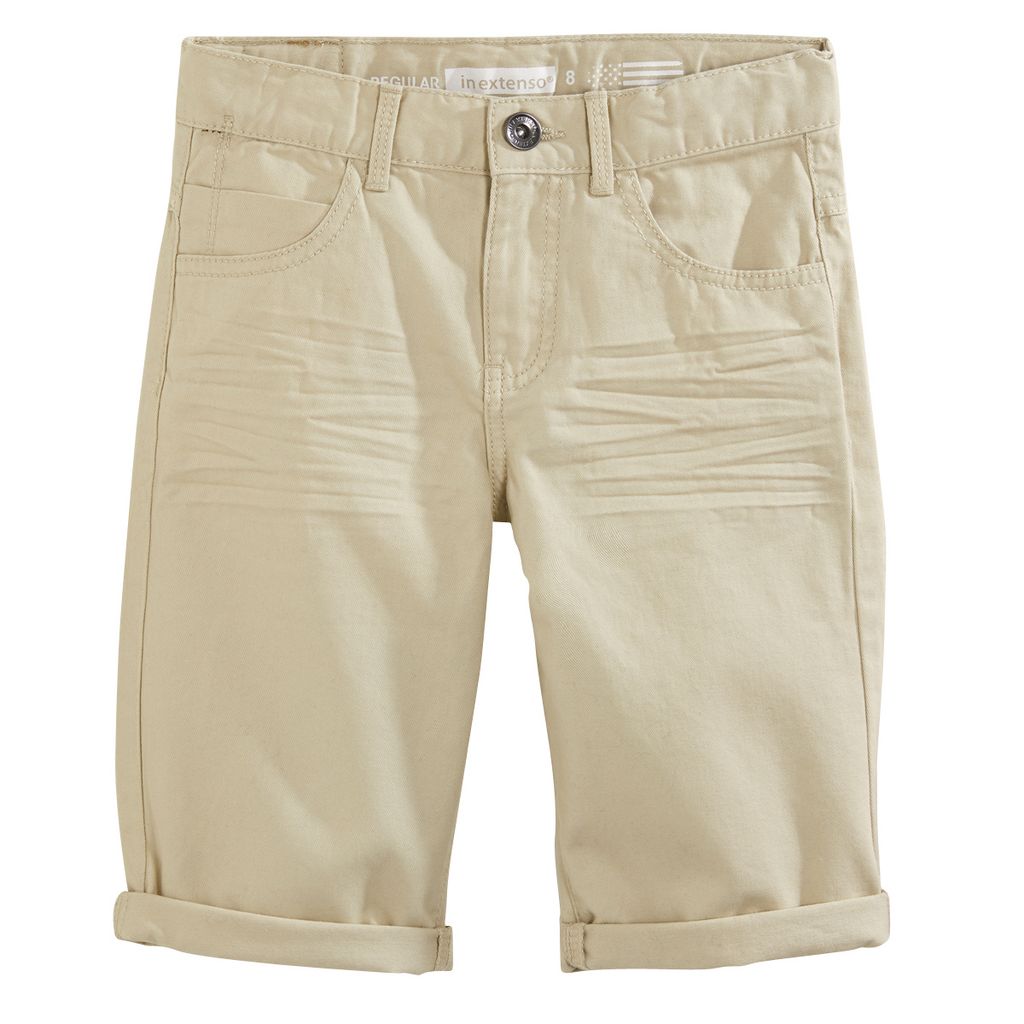 Pour les garçons qui suivent la tendance, ce bermuda beige tombe à pic ! 100% coton, agréable à porter. Toucher doux. Pratique : ceinture à passants ajustable par un élastique boutonné à l'intérieur et ouverture par bouton et zip. 5 poches. On note les plis permanents, les revers non cousus à l