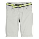 Ce bermuda ceinturé plaira aux garçons ! Ceinture à rayures, avec boucle en métal. Confortable. 100% coton. Pratique : taille ajustable par un élastique boutonné à l'intérieur, ouverture par pression et zip. 5 poches. Jeu de surpiqûres. Revers non cousus. Ce bermuda garçon est lavable en ma