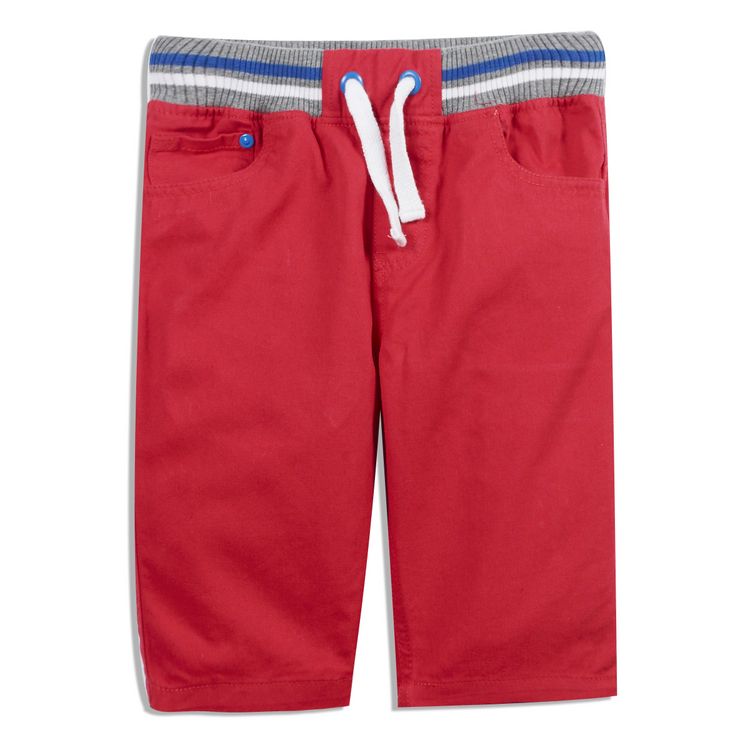 Allure décontractée pour nos garçons avec ce bermuda coloré ! Agréable à porter. 100% coton. Taille élastiquée en bords-côtes rayés, resserrable par un cordon. 5 poches. Ce bermuda garçon est lavable en machine à 40°.