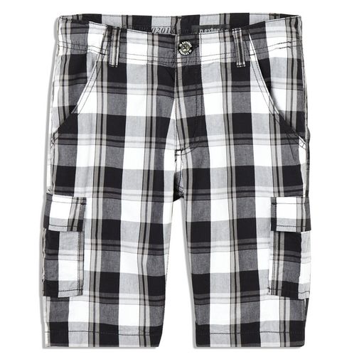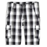 Ce bermuda à carreaux est pile dans la tendance ! Toile légère et confortable 100% coton. Taille réglable par un élastique boutonné à l'intérieur. Ouverture par bouton et zip. Deux poches devant, deux poches à scratch sur le côté et deux au dos. Ce bermuda enfant est lavable en machine à 40