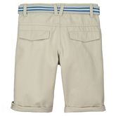 En savoir +Ce bermuda à ceinture pour garçon au style décontracté ne passera pas inaperçu cet été ! Toucher doux. Agréable à porter. 100% coton. Pratique : taille ajustable par un élastique boutonné à l'intérieur, ouverture par bouton et zip. 3 poches sur le devant, 2 rabats cousus au dos. Surpiqûres fantaisie. Ceinture tressée à rayures, avec boucle en métal. Ce bermuda garçon est lavable en machine à 40°.
