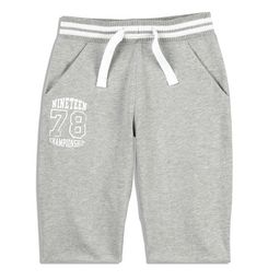 Du confort et du style : ce bermuda garçon est juste parfait ! Molleton léger agréable à porter. Taille en bords-côtes rayés, décorée d'un cordon. 3 poches. Imprimé sur le devant. Découpe à cru à la base. Ce bermuda en molleton garçon est lavable en machine à 40°.