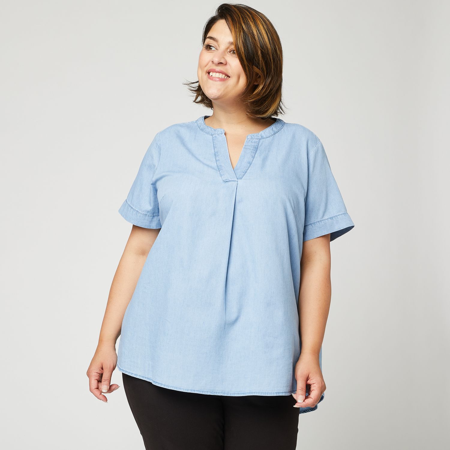 Blouse en jean col mao femme