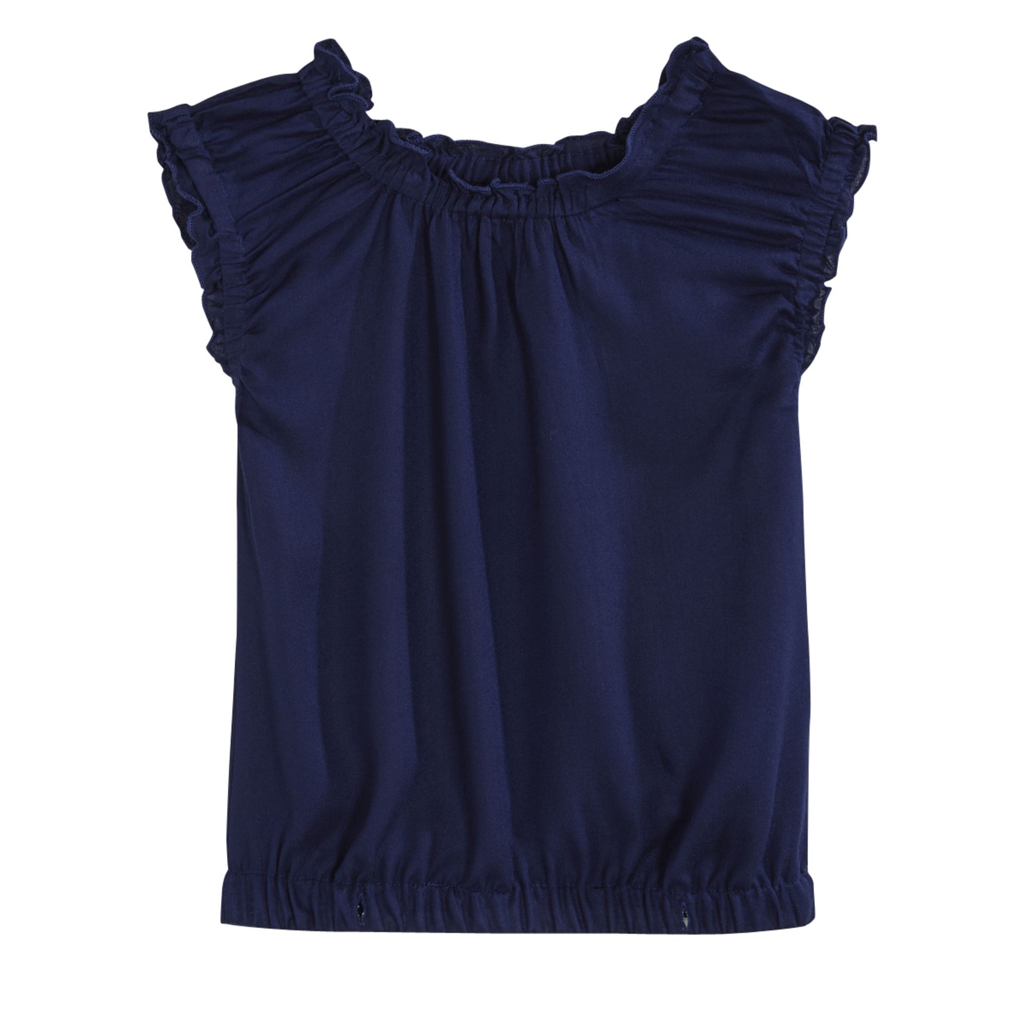 Cette blouse apporte un look élégant et stylé aux filles ! On aime : sa couleur intense, très chic, et sa matière fluide. La blouse fille possède un col rond et des bords élastiqués. On note les volants fantaisie et la base élastiquée avec ouvertures fantaisie. Elle est facile d'entretien.