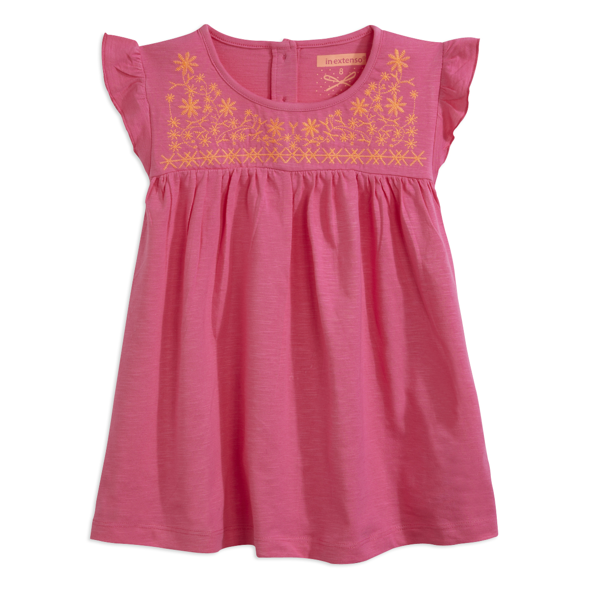 Votre fille aime le rose ? Faites le bon choix avec cette charmante blouse. Maille confortable 100% coton. Col rond, manches volantées. Broderie fantaisie fluo. Jeu de plis. Ouverture boutonnée en haut du dos. Pas d'étiquette dans le cou pour un meilleur confort. Base évasée. Cette blouse fille