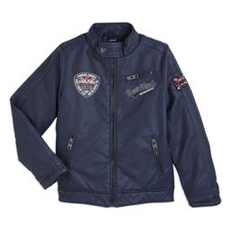 La rock attitude s'empare des garçons ! Blouson enfant, légèrement ouatiné. Dessus synthétique. Intérieur doublé. Col montant fermé par 1 pression. 0uverture zippée. 3 poches zippées. Jeu de découpes. Badges appliqués. Cette veste enfant est lavable en machine à 30°.