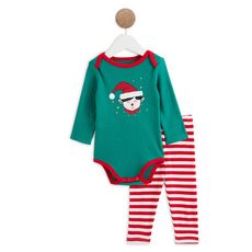 En savoir +Bébé sera tout confort pour Noël dans cet ensemble trop mignon composé ; d’un body chiné à manches longues et col US imprimé d'un mignon Père Noël devant, et d’un legging imprimé dans la thématique de cette période magique. Facile d'entretien, l'ensemble est en 100% coton !