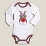 Il est vraiment irrésistible ce body bébé manches longues ! Pur coton. Agréable à porter. Impression renne sur le devant. Emmanchures américaines, c'est pratique. Pressions à la base. Ce body bébé est lavable en machine à 40°.