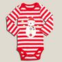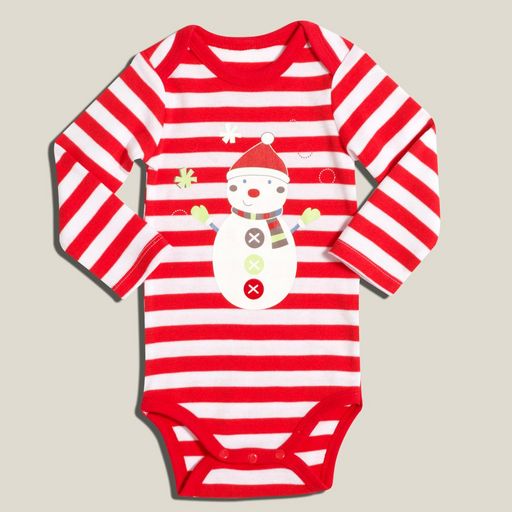 Indispensable en période de Noël : le body rayé bébé ! Impression bonhomme de neige. 100% coton, c'est plus doux et confortable pour bébé. Pratique : emmanchures américaines pour passer facilement. Pressions à la base. Ce body bébé avec bonhomme de neige est lavable en machine à 40°.