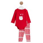 Bébé sera tout confort pour Noël dans cet ensemble trop mignon composé ; d’un body chiné à manches longues et col US imprimé d'un mignon Père Noël devant, et d’un legging imprimé dans la thématique de cette période magique. Facile d'entretien, l'ensemble est en 100% coton !
