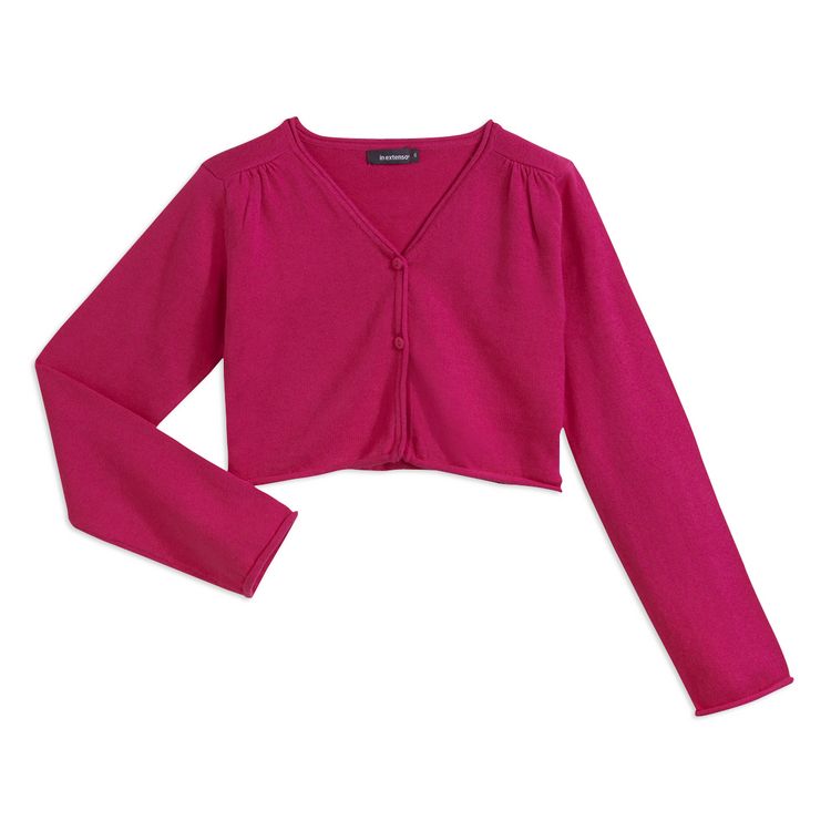 On parie que ce boléro rose plaira aux filles ! Maille douce et agréable à porter. Ouverture boutonnée. Finition roulottée. Fronces fantaisie au niveau des épaules. Bords-côtes. Ce gilet court fille est lavable en machine à 40°.