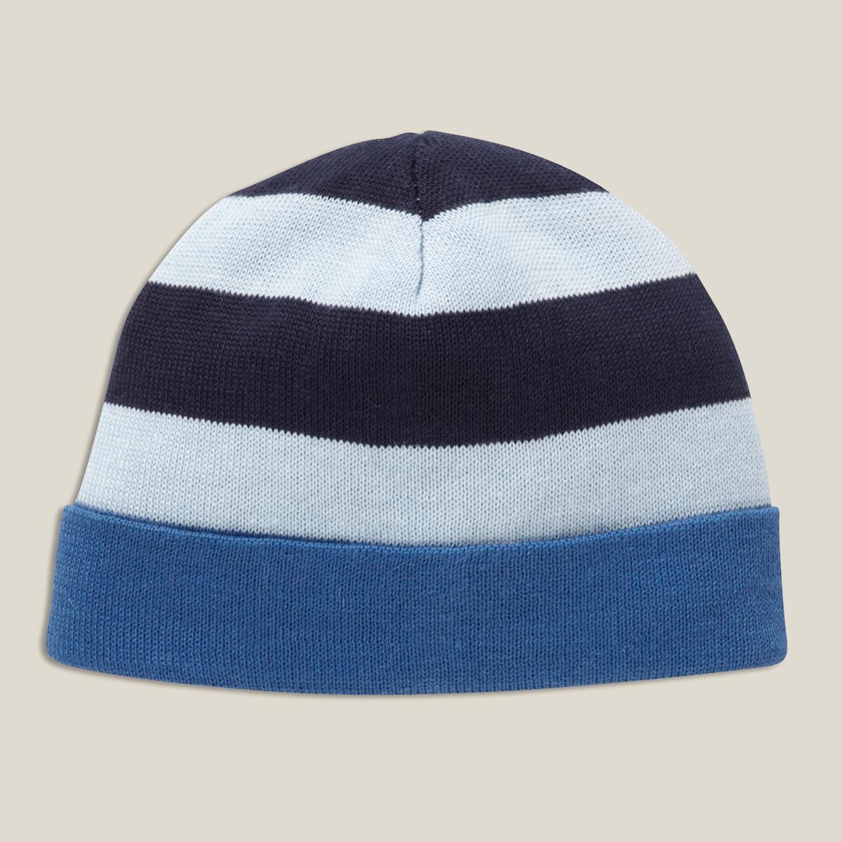 Les mamans craquent pour ce bonnet réversible bébé garçon ! On le porte côté rayures ou côté uni. Tricot agréable à porter. Revers à la base. Ce bonnet bébé est lavable en machine à 30°.