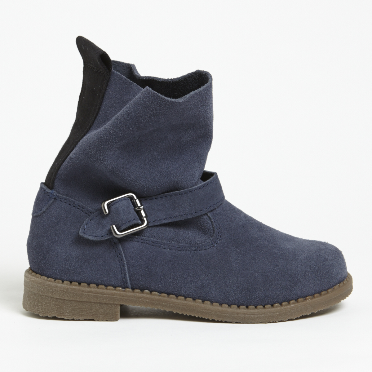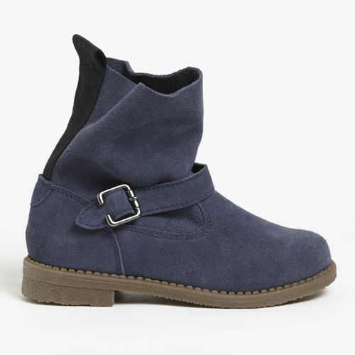 On est fan du style de ces boots pour fille. Extérieur en daim, rehaussé d'une boucle métallique. Bande renforcée et contrastée sur l'arrière, avec tirette pour les enfiler facilement. Intérieur confortable avec semelle de propreté en cuir. Semelles extérieures élastomère antidérapantes pour ce