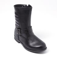 Le classique est revisité avec ces boots fille et leur empiècement matelassé ! Ouverture pratique : zip latéral. Dessus uni, animé d'un jeu de surpiqûres et d'une patte avec boucle fantaisie. Intérieur textile. Ces boots fille ont une semelle élastomère antidérapante.