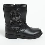 Ces bottes se coordonneront facilement avec une jupe ou un pantalon, pour le plus grand bonheur de votre fille. Ouverture entièrement zippée sur le côté. Intérieur textile et synthétique confortable, matelassé pour un plus grand confort. Renfort arrière pour un maintien complet. Imprimé tête de