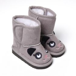 On craque pour ces bottes fourrées bébé et leur animation ludique. Faciles à enfiler avec l'ouverture scratchée sur le côté. Dessus en textile toucher doux, avec animation "tête de souris". Intérieur en fausse fourrure, chaude et confortable. Semelle élastomère antidérapante pour ces bottes four