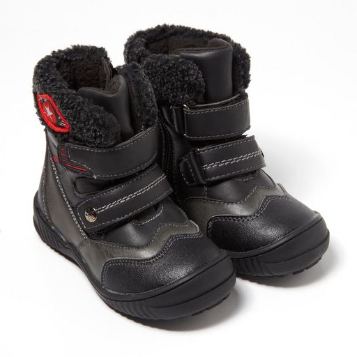 Ces bottines pour bébé apporteront chaleur et confort à votre garçon cet hiver. Dessus synthétique résistant. Intérieur textile très doux. Contour en fausse fourrure, matelassé. Ouverture par 2 pattes scratchées sous passant avec boucle en métal, faciles à enfiler. Animation par surpiqûres con