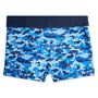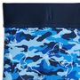 C'est parti pour la baignade avec classe avec ce beau boxer de bain et ses requins imprimés ! Les yeux et les dents au niveau de la taille ajoutent une touche fantaisie au boxer.
