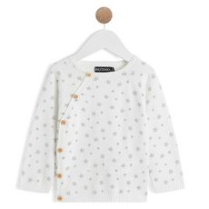 En savoir +Ce joli pull boutonné forme brassière en maille coton est parfait pour composer des tenues élégantes et douillettes pour bébé. On craque pour le joli motif étoilé et les boutons effet bois sur fond écru.