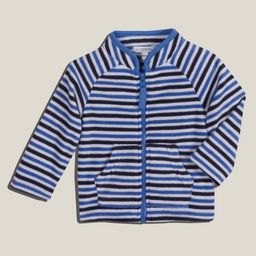 Réchauffez les tenues de bébé avec ce gilet rayé. Agréable à porter. Réalisé en polaire. Ouverture zippée. Col montant. Manches longues. 2 poches. Ce cardigan polaire bébé garçon est lavable en machine à 40°.
